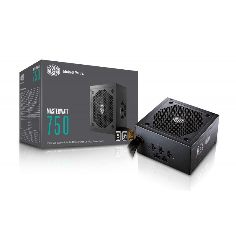- ALIMENTATION ATX COOLERMASTER MASTER WATT MPE-7501-ACAAB-EU - 750 W 80+ Bronze - Refroidissement: 120 mm - Connecteurs : ATX 24 pin x1 / EPS 4+4 Pin x 1 / EPS 8 Pin x1 / SATA x8 / Peripheral 4 Pin x4 / PCI-e 6+2 Pin x4
